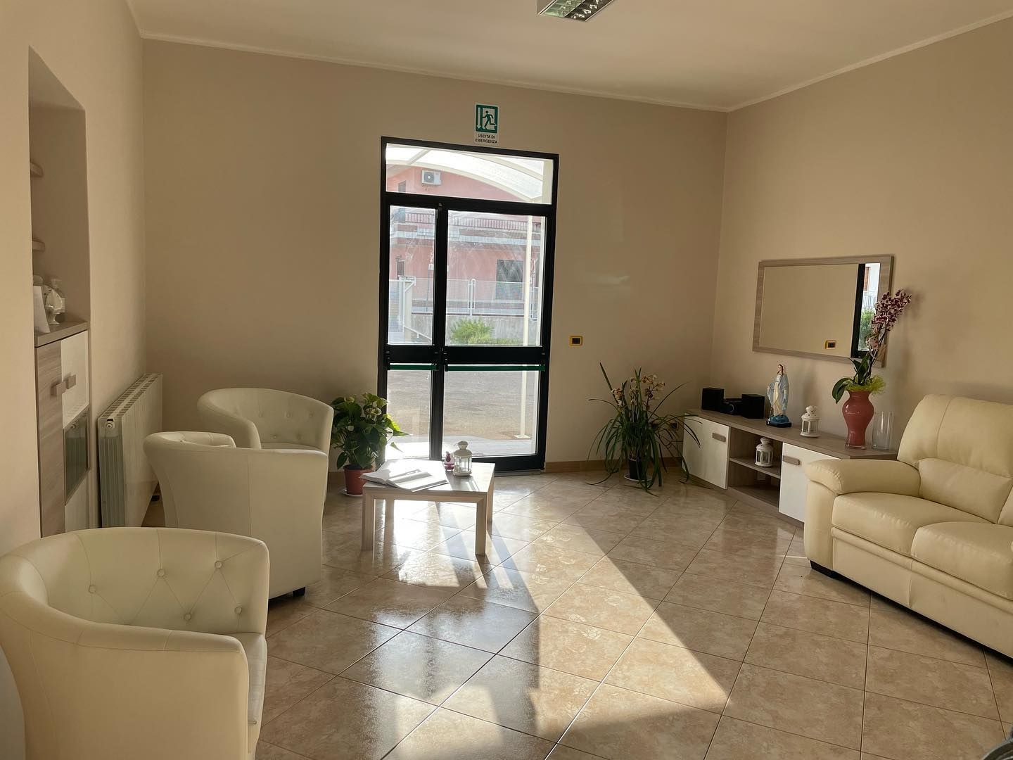 La struttura fornita di ambienti nuovi, con colori tenui e delicati, caratterizzati da ampi spazi, con camere doppie luminose, dotati di tutti i comfort, consentono serenità e consolidamento di relazioni interpersonali, arricchita dalla disponibilità di un'ampia area verde.